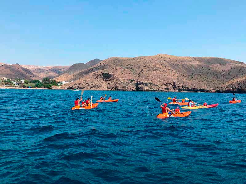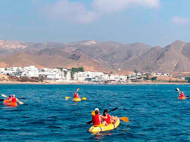 Las aguas de esta zona del Mediterraneo son fantásticas para la práctica del piragüismo. Palear en Kayak se convierte en una excepcional opción para conocer la costa de Cabo de Gata. Es una actividad apta para niños y adultos. Diversas empresas te ofrecen la posibilidad de alquilar una piragua o realizar una ruta guiada en kayak por diversas zonas del Parque Natural.