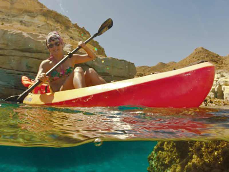 Si quieres conocer el Cabo de Gata en kayak, diversas empresas te ofrecen la posibilidad de alquilar una piragua o realizar una ruta guiada en kayak por diversas zonas del Parque Natural.